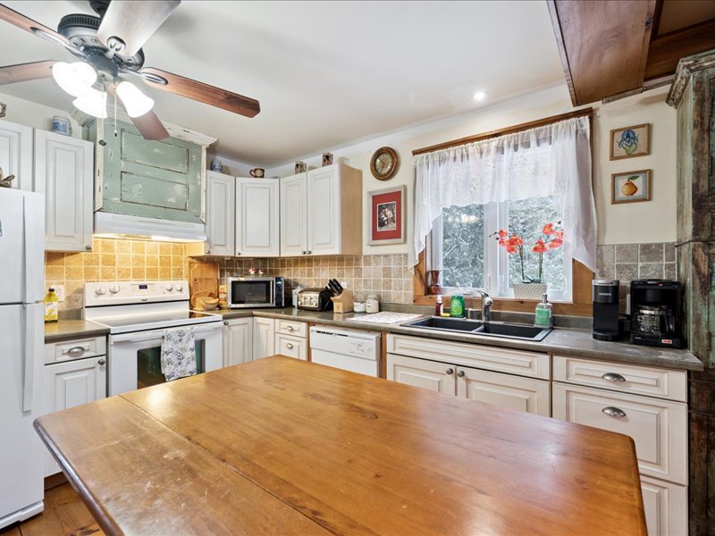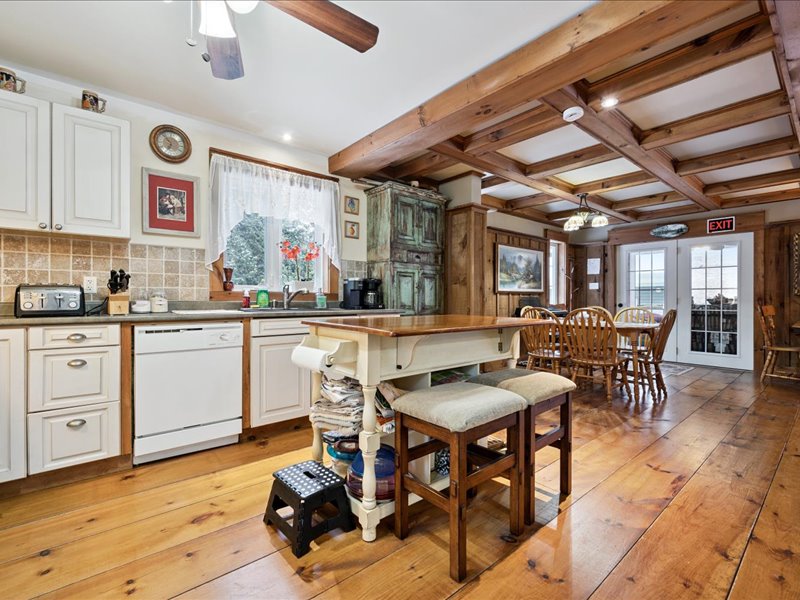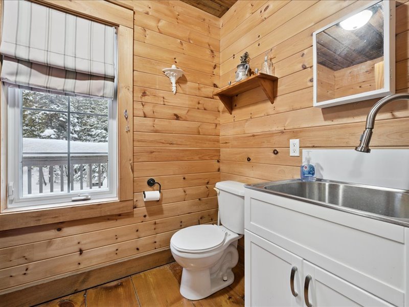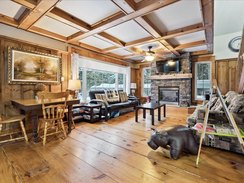 Step inside and be greeted by the soft glow of the propane fireplace in the great room, rich pine floors underfoot, and large windows that fill the space with gentle winter light. It’s the perfect place to curl up with a blanket, sip a warm drink, or watch snowfall drift through the trees.
