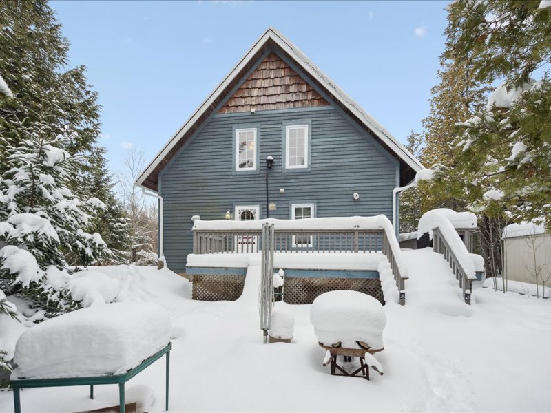The wrap-around porch, now overlooking a quiet winter landscape, is ideal for bundled-up morning coffee or admiring the rosy hues of a Lake Huron sunset. In the private treed backyard, enjoy the peaceful hush of the forest as snow settles on the branches above.