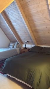 Baycrest comfortably accommodates up to eight guests with three large bedrooms, including a master suite that opens directly onto the deck—an inviting spot to enjoy your morning coffee as the sun rises over a fresh blanket of snow. The lower-level family room offers a cozy retreat for board games, movie nights, or unwinding with a warm drink after a day spent exploring the winter landscapes nearby.
