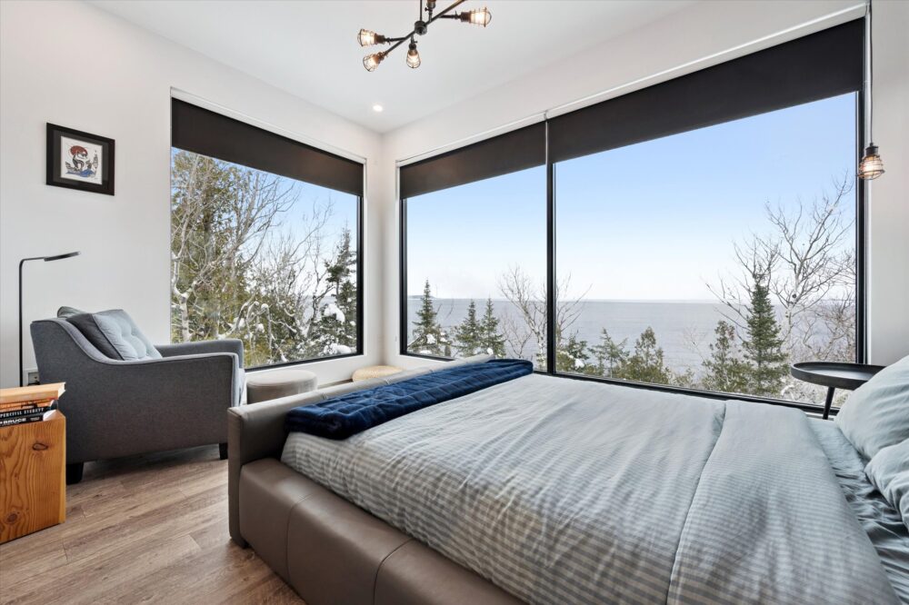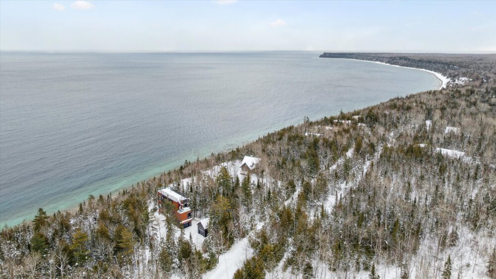 Borchardt Retreat is a bold, modern escape in Lions Head, tucked high in the forest with a stunning rooftop terrace. Inside, enjoy sun-filled open living, floor-to-ceiling windows, a cozy fireplace, designer kitchen and dining area, restful bedrooms, and a spa-style bath with double vanity and glass shower. Step onto the elevated deck for coffee among the trees, then explore nearby Bruce Trail hikes, Lion’s Head Lookout, beaches, and Georgian Bay. Quiet, private and perfect for year-round stays.