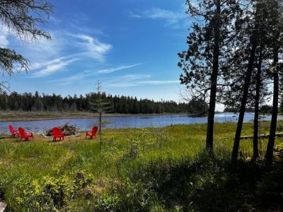 Outdoors, the property features two large fire pits—one at the front of the cottage and one by the shoreline—both with ample seating for evening gatherings. Please note that firewood is not provided, and all fires must be fully extinguished after each use.