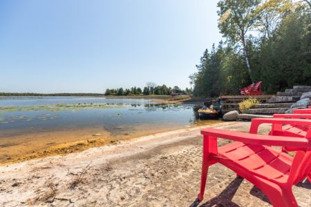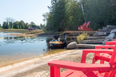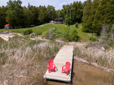 Welcome to Midnight Star in Stokes Bay—your bright, modern waterfront escape on the Bruce Peninsula. This updated cottage offers 3 cozy bedrooms and 2 full bathrooms, an airy open-concept living space, a well-equipped kitchen, and a stunning stone fireplace. Outside, relax on the large deck with BBQ, wander to the private dock, and sink into red Adirondack chairs for dreamy sunsets over calm bay waters.