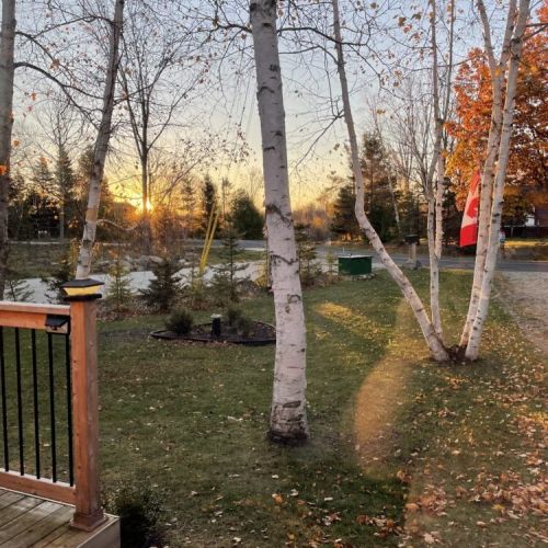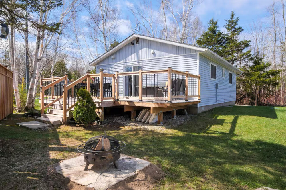 Each season brings its own charm. Summer is all about lake days and long evenings by the fire, fall fills the forest with colour, winter brings a cozy sense of retreat and snowy stillness, and spring awakens the landscape with fresh growth and returning birds.