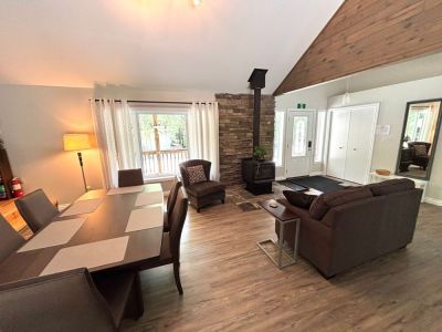 Escape to this bright and cozy retreat on Little Pike Bay. Enjoy a modern kitchen, open living and dining areas with a wood-burning fireplace, comfy bedrooms, and two stylish bathrooms. Step outside to a spacious back deck with a hot tub, BBQ, and dining area, all surrounded by nature. With cozy indoor spaces, plenty of natural light, and inviting outdoor amenities, it’s the perfect place to relax, recharge, and make lasting memories.