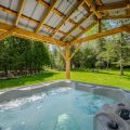 Slip into the hot tub and enjoy the peaceful beauty of the forest and night sky.