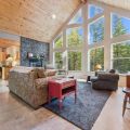 The open-concept kitchen and dining area are designed for easy gathering, from slow breakfasts to shared meals. Two calm, comfortable bedrooms offer restful nights, and a dedicated office provides a quiet space for remote work with views of the surrounding woods.