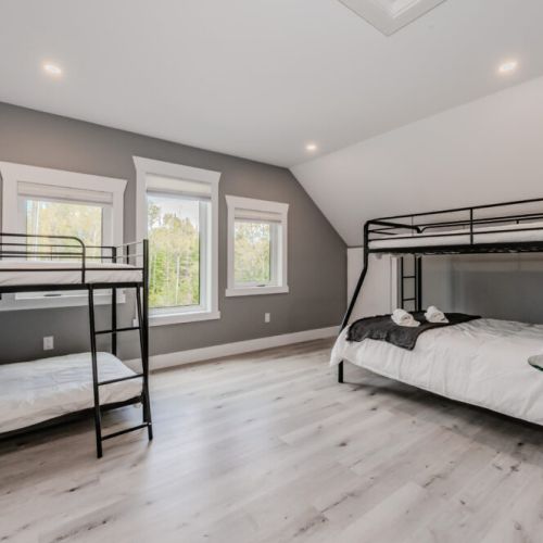 ★ Upstairs, an open-concept landing becomes a reading nook, remote-work space, or cozy lounge, alongside two additional bedrooms and clever crawl-space storage for winter gear.