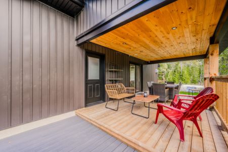 ★ The main-floor primary bedroom offers an ensuite bath and private deck access—a serene spot for bundled-up morning coffee while taking in the quiet winter scenery.