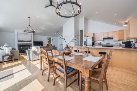 The great room becomes your warm refuge—a stunning place to gather, dine, or simply enjoy the views.