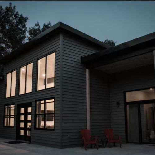 A firepit ringed by Muskoka chairs for stargazing and snowy evening gatherings