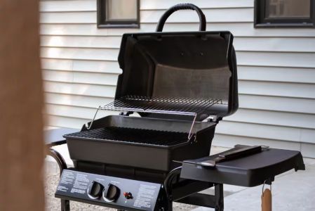 Propane BBQ on a covered patio—yes, you can grill year-round