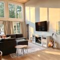 Step inside a one-level bright, open-concept haven where vaulted ceilings, warm textures, and soft winter light create a peaceful space to slow down. Floor-to-ceiling windows reveal quiet forest views, while an inviting fireplace makes every evening feel warm and intentional.