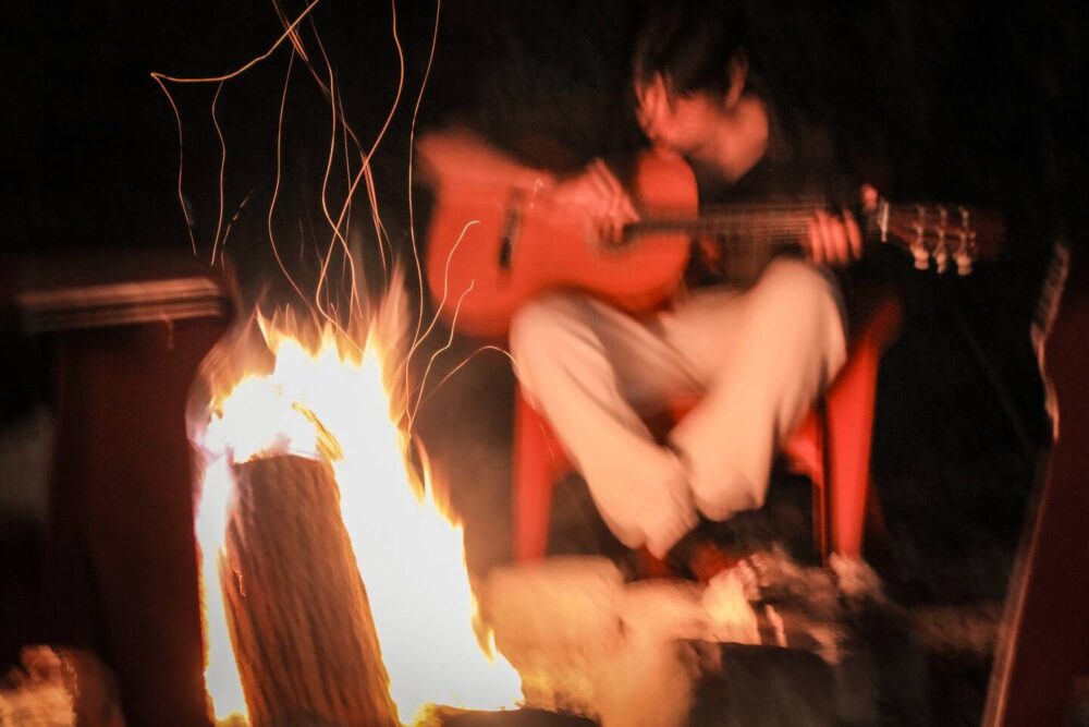 Peaceful spot for bundled-up morning coffee or evening drinks under crisp, starry skies.