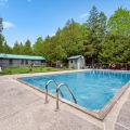 Spend your days lounging by the seasonal in-ground pool (open late June through early September) or exploring the surrounding nature trails. In the evenings, gather around the outdoor bonfire pit under a sky full of stars — perfect for making s'mores and lasting memories.