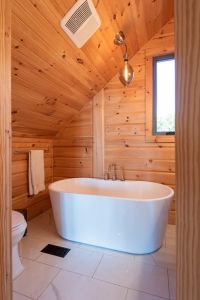 A luxurious bathroom with an extra-large soaker tub—perfect for warming up after winter hikes