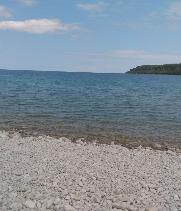Beautiful smooth stone pebble beach. This is not the same, and not at all like the Lion’s Head Harbour Sand Beach. Lots of great smooth rounded stones to skip. You need decent footwear but the walk to the north along the beach yields some great overhanging rocks. Be careful if you walk underneath not to get a spider in the face.