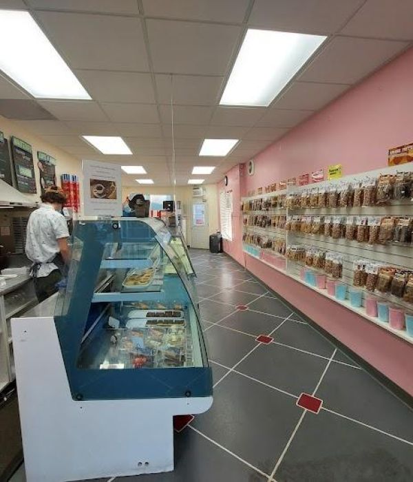 Ice cream (including soft serve), shakes, fudge, baked goods, coffee/tea, hot chocolate and cold drinks.